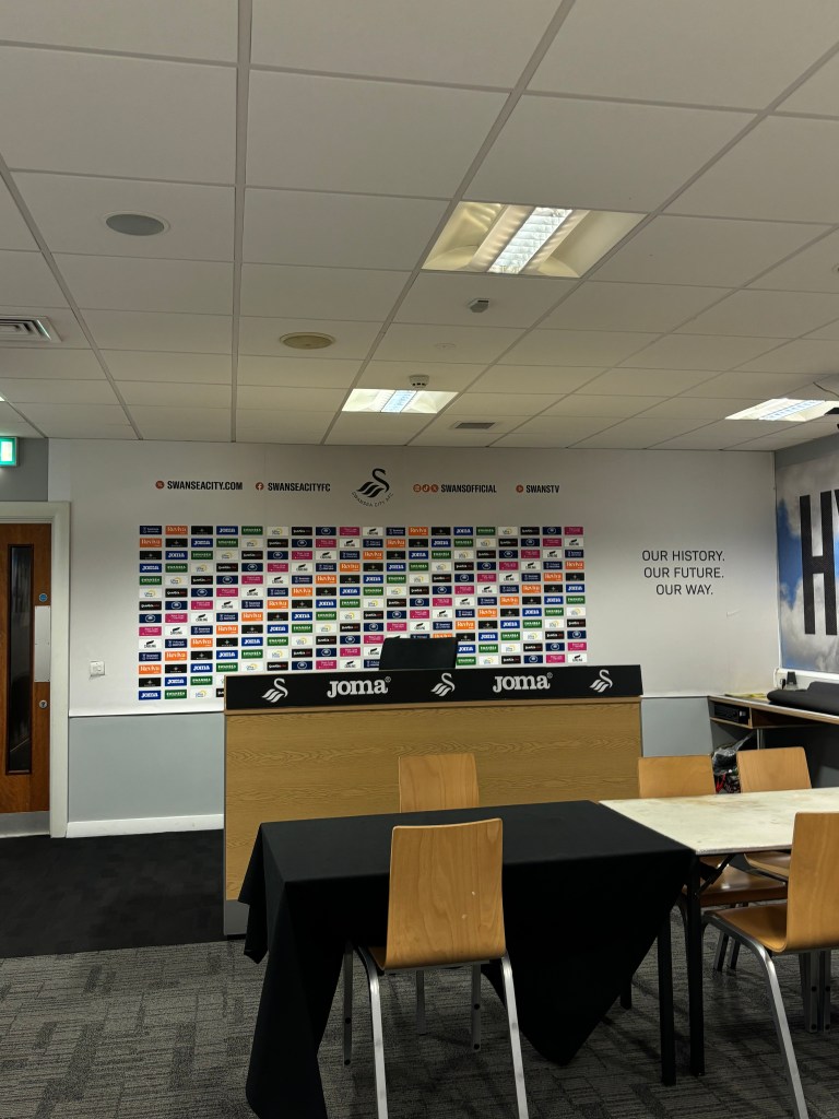 I arrived at Swansea.com Stadium at 6 pm. After collecting my press pass and meeting with Swansea City Media Executive Rachael Tucker—who kindly provided us with this opportunity—she gave us a quick tour of the stadium, showing us the press room and press box.