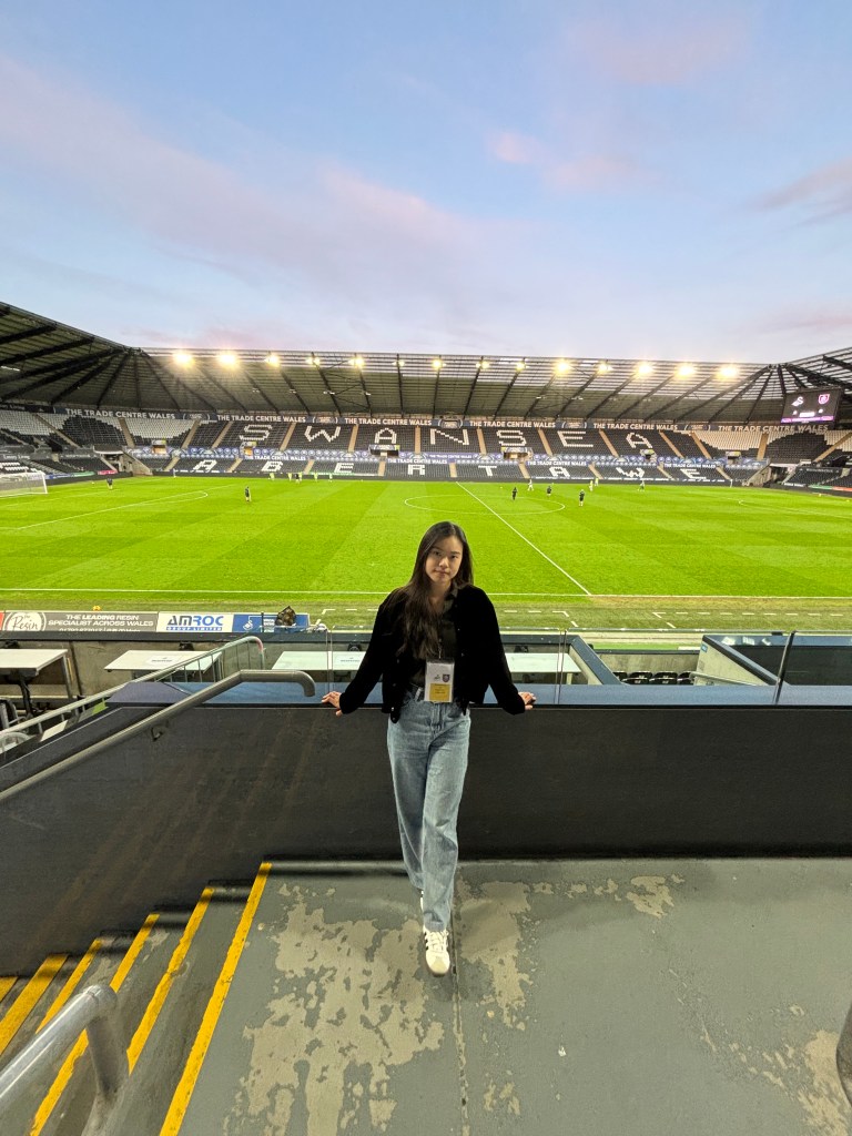 Before the match, while filming content in the stands, I met a student who studies Advanced Sports Performance Science at Swansea University and is currently doing a placement with Swansea City. He shared a lot of insights about being part of the team, from pre-game preparation to how they monitor and analyze player performance data. We had a great conversation throughout the match, and it was both interesting and valuable. Hearing from a professional gave me a deeper understanding of football and made my first match experience even more meaningful.